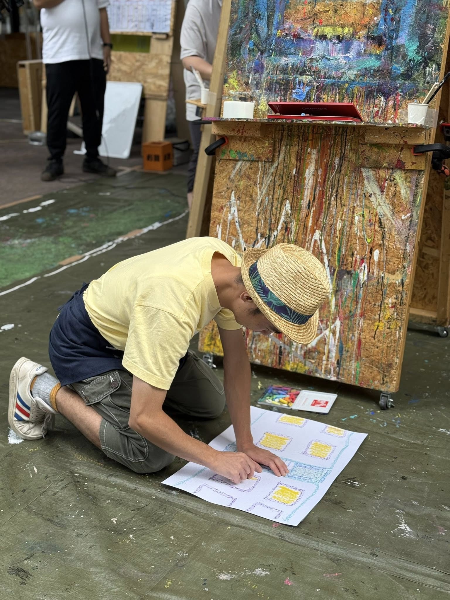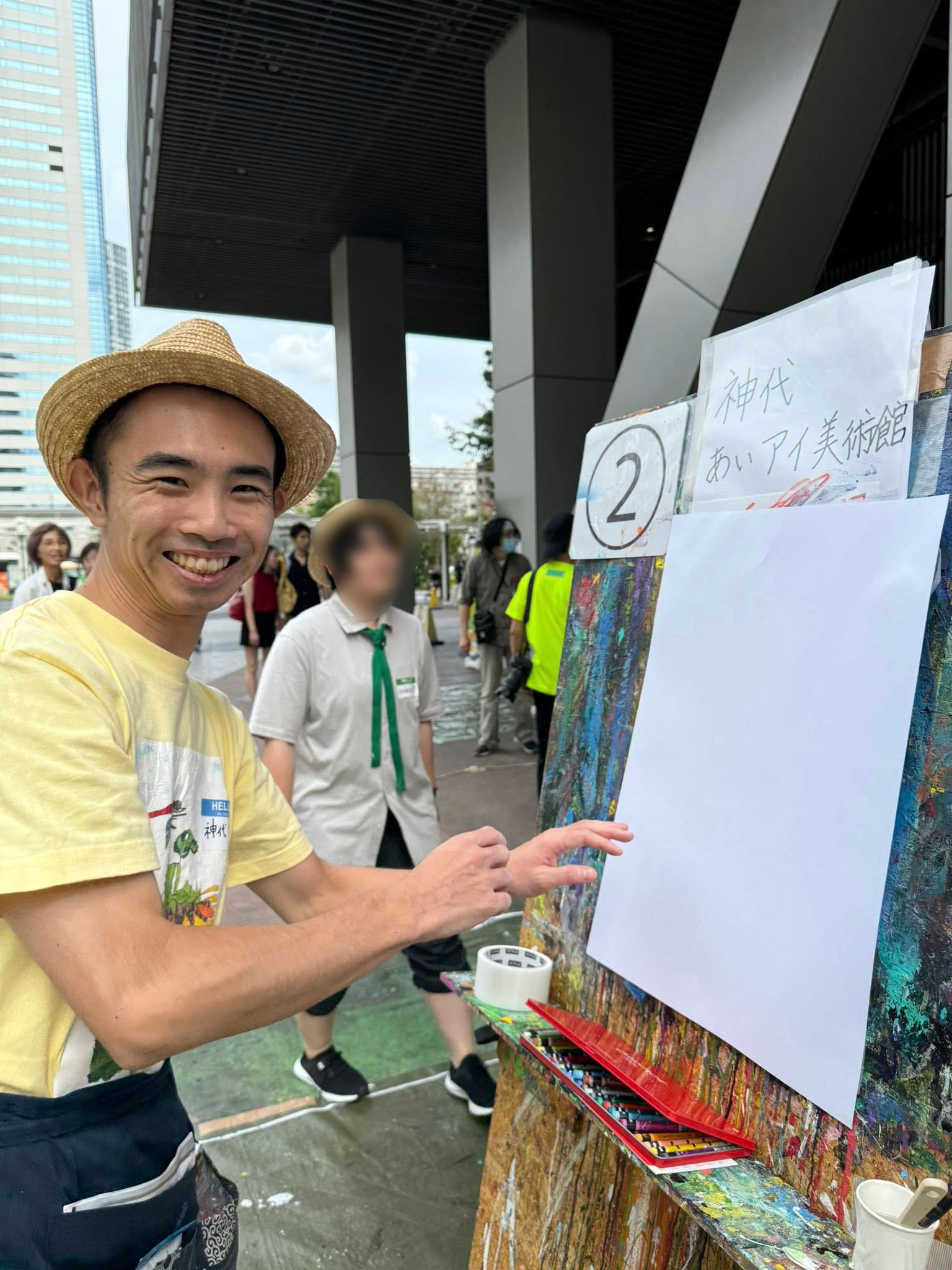 2024公募展入賞・入選アーティストによる筆ロックに昨年入賞しました神代智永画伯が参加しました! くじ引きでお題が発表され5分で描くという筆ロック、お題を理解して、短時間で描き上げるというのは知的障害者にとってはなかなかなハードルのトーナメント。最初のお題は「団地」2回戦は「沼」3回戦(準々決勝)と勝ち抜きました!